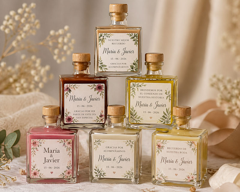 Este tipo de personalización no solo mejora la estética, sino que refuerza el recuerdo emocional. El invitado no ve una botella genérica, sino algo pensado específicamente para ese día.