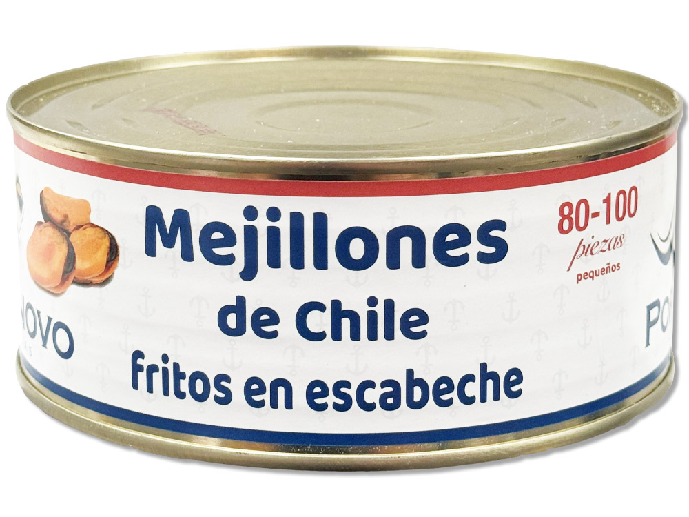 Ingredientes: mejillones de Chile (Mytilus chilensis) , escabeche (aceite de girasol, vinagre de vino tinto, agua, aromas naturales y sal). Contiene moluscos.